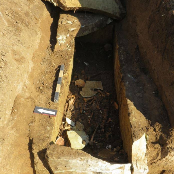 „სამარხის გახსნის პროცესში ნათლად გამოჩნდა, რომ სამარხის ფილები და კირხსნარი წყალს არ ატარებდა, ძვლოვანი მასალა სანახევროდ ჩაფლული იყო წყლის და ტალახის ნაზავში. საბოლოოდ, ფოტო და გრაფიკული ფიქსაციის შემდეგ ძვლოვანი მასალა სამარხში დარჩა, მიწით ამოივსო და დაიხურა. სამარხი აბსოლუტურად უინვენტარო აღმოჩნდა“, – აცხადებენ სააგენტოში.