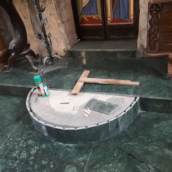 „ყინწვისის ღმრთისმშობლის გუმბათიან ეკლესიაში XX საუკუნის 70-იანი წლების ქვის იატაკი განვლილ დღეებში შეიცვალა. სამუშაოები საქართველოს საპატრიარქოს ხელოვნებისა და რესტავრაციის ცენტრთან და საქართველოს კულტურული მემკვიდრეობის დაცვის ეროვნულ სააგენტოსთან შეუთანხმებლად წარიმართა. კანონდარღვევით მიმდინარე პროცესს არ ჰყოლია არქეოლოგიური ზედამხედველი. უნებართვო სამუშაოების შედეგად არსებულ იატაკზე, თარაზულად მოსწორებულ ცემენტის ზედაპირზე არატრადიციული წყობითაა დაგებული ძვირადღირებული მარმარილოს მსხვილი, მართკუთხა ფილები, რაც იატაკის დონეს არსებულთან შედარებით რამდენიმე სანტიმეტრით მაღლა სწევს და დარბაზში არსებულ საფლავის ქვას სცდება.
