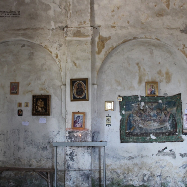 ინტერიერი შელესილი იყო და შეთეთრებული. შეთეთრების ქვეშ გაირჩევა საღებავის რამდენიმე ფერი. საკურთხევლის წინ ხის კანკელია. იატაკი ქვაფენილია. ტაძარში ინახება დიდი ქვაჯვარი.