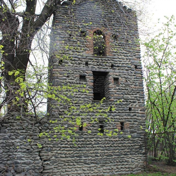 ოთხსართულიანი კოშკი ნაგებია რიყის ქვით, თაღების გამოსაყვანად კი აგურია გამოყენებული. კოშკს სამხრეთიდან ქონდა ეზო, რომელიც ასევე რიყის ქვით ნაგები გალავნით იყო შემოზღუდული. ჩვენს დრომდე გალავნის მხოლოდ აღოსავლეთის და დასავლეთის კედლების ფრაგმენტებია შემორჩენილი.