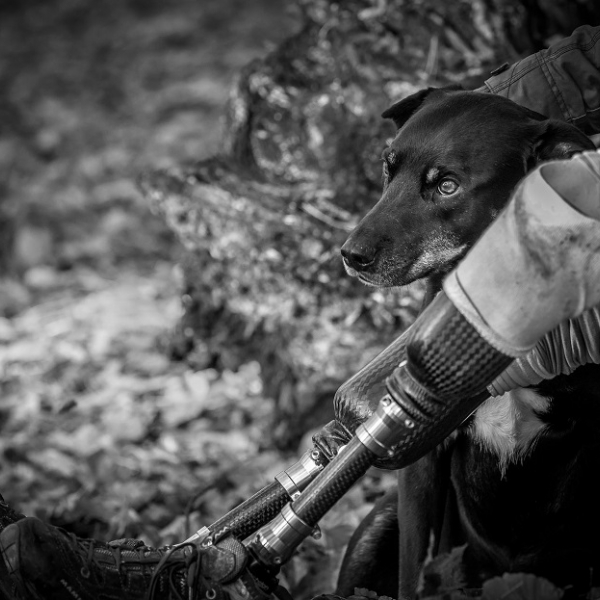 კატეგორია „მაშველი ძაღლის“ გამარჯვებული: ალექსანდრა რობინსი - ძაღლი სახელად ქლოე მომვლელის ხელს ყნოსავს.