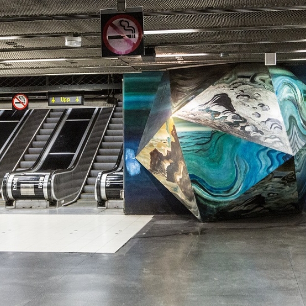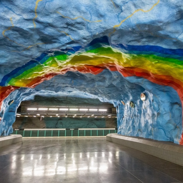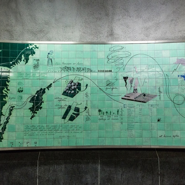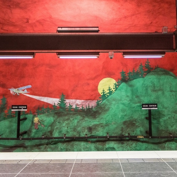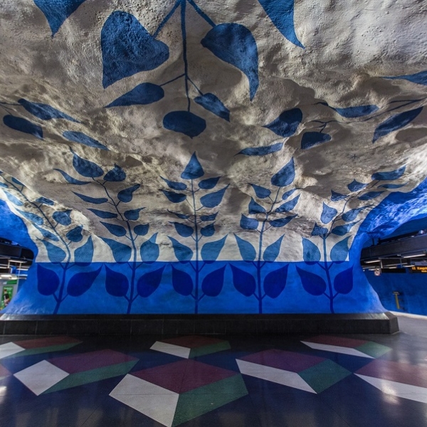 ხასხასა ლურჯი ფერის ფოთლებით მოხატული სადგური სახელად T-Centralen, პირველი მეტროსადგურია სტოკჰოლმში. 1950 წლამდე სხვანაირად გამოიყურებოდა, 1975 წელს კი პერ ულოფ ულტვედტმა დღევანდელი სახე მისცა.