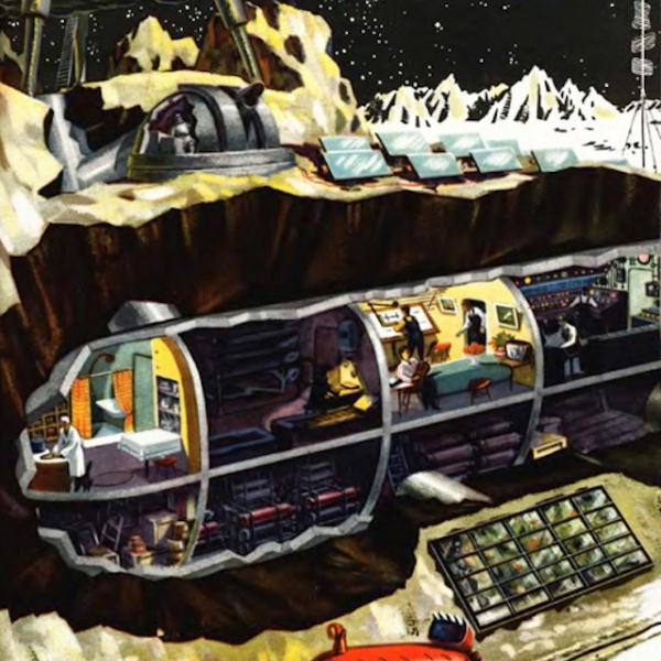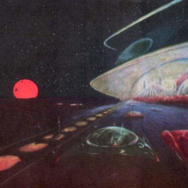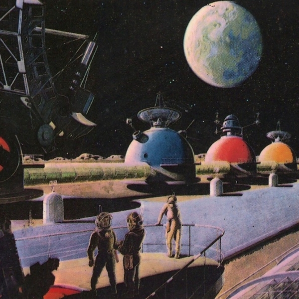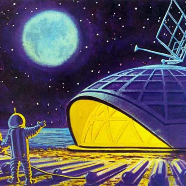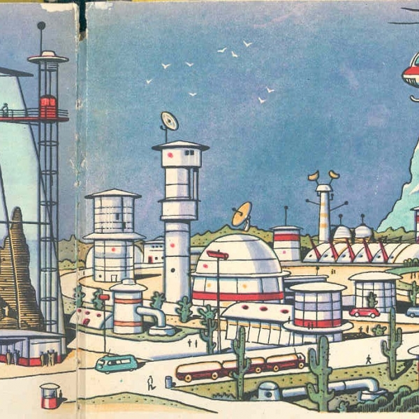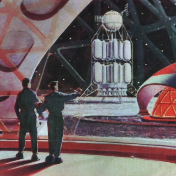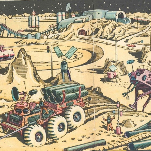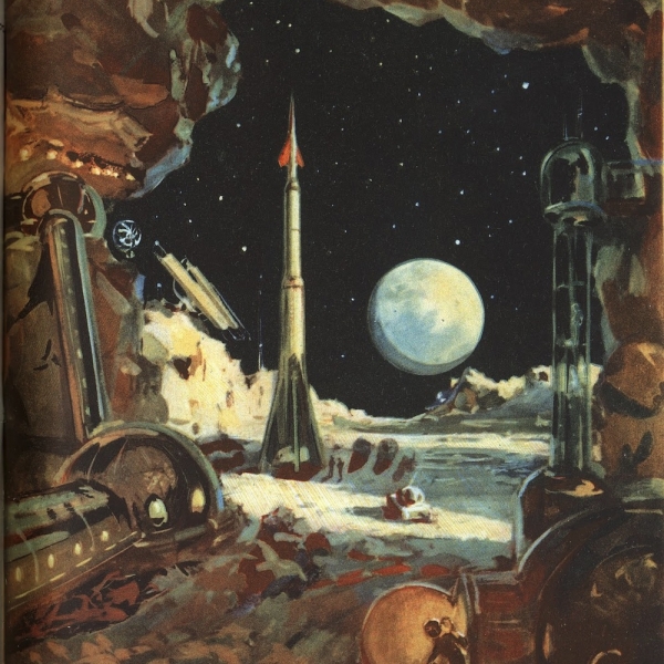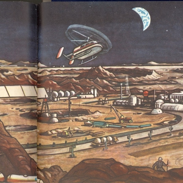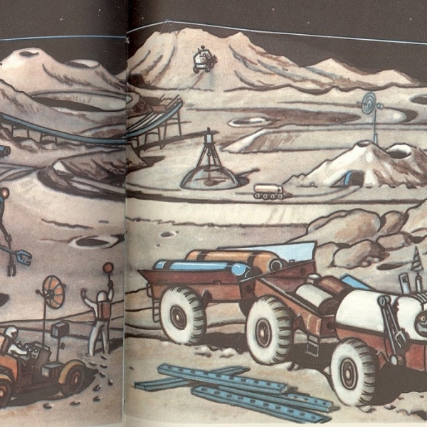 ფოტოებზე ასევა ილუსტრაცია 1958 წელს გამოცემული წიგნიდან „მოგზაურობა კოსმოსში“, პოპულარულ ჟურნალ Техника – Молодёжи-ს ილუსტრაციები და 1960-70-იან წლებში შექმნილი სხვა მსგავსი ნახატები: