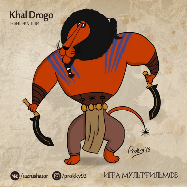 ახალგაზრდა რუსმა გრაფიკულმა დიზაინერმა, სტუდენტმა პროკოპი ულიაშოვმა სახალისო და კრეატიული ნამუშევრები შექმნა, რომლებშიც ცნობილი საბჭოური მულტფილმის პერსონაჟები „სატახტოთა თამაშის“ გმირების გარეგნობით გამოაწყო.