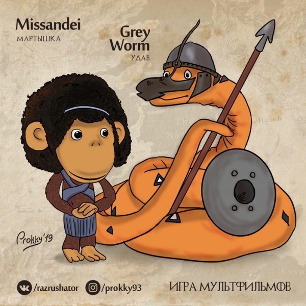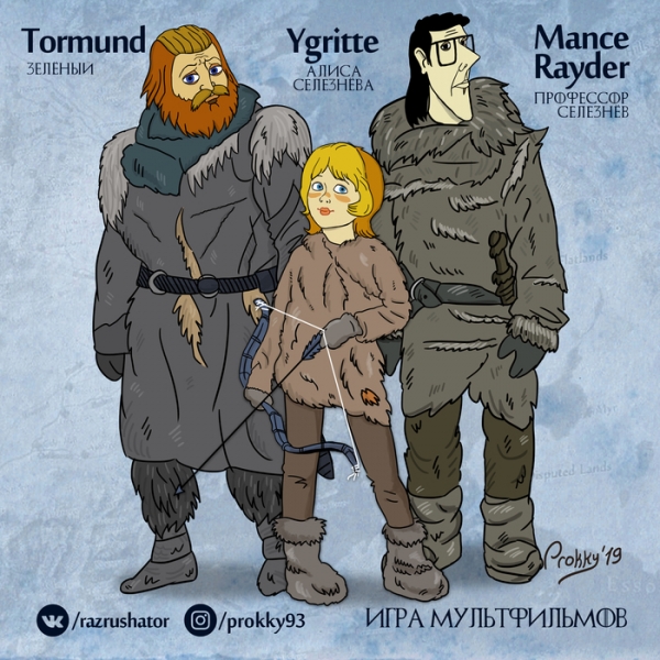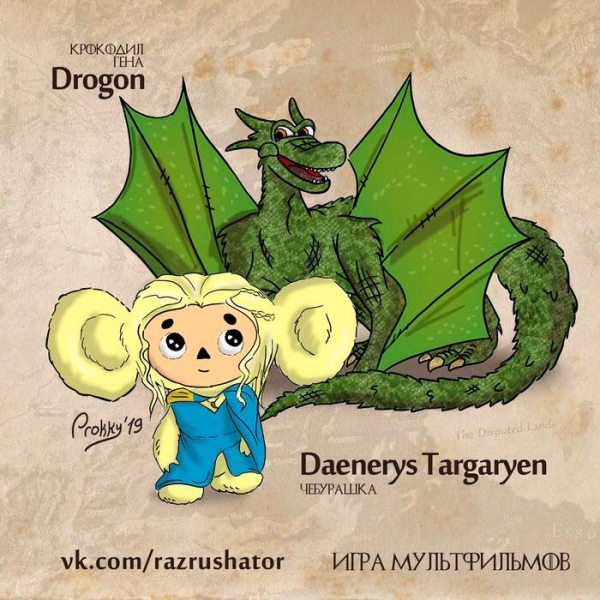 ჩებურაშკა, გენა, კარლსონი, ვინი-პუჰი და სხვები, შესაბამისად, დენერის ტარგარიენად, დრაკონად, ტირიონ ლანისტერად და ჯონ სნოუდ იქცნენ ილუსტრაციების სერიაში სახელად „მულტფილმების თამაში“.