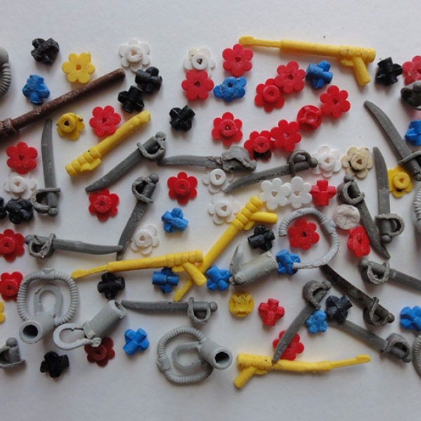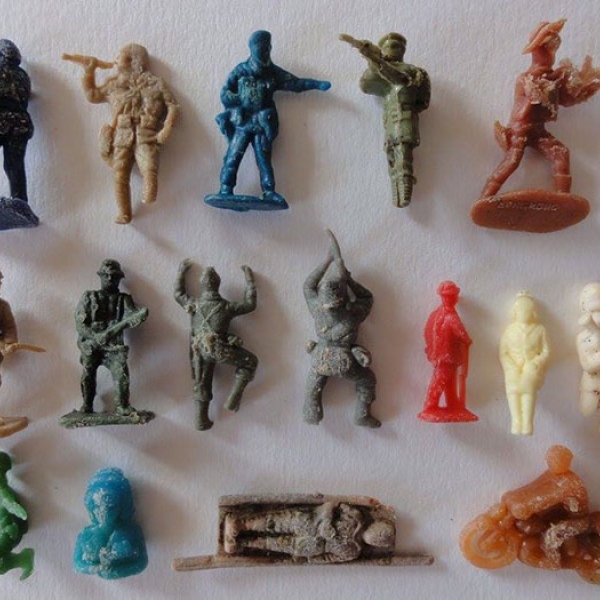 ადამიანების მიერ დაყრილ ნარჩენებში ძირითადად პლასტმასის სათამაშოები ჭარბობდა. რობ არნოლდმა მათგან ჯარისკაცები, საბურავები, LEGO-ს ფიგურები, სასტვენები, ყურის ჩხირები და სხვა ნივთები ცალ-ცალკე დაახარისხა და შემდეგ ქალაქ ლისკარდის მუზეუმში მიიტანა გამოფენაზე სახელწოდებით - „პლასტიკური ხანა“, სადაც გარემოს დაბინძურების თემასთან დაკავშირებული მსგავსი ნამუშევრები იყო გამოფენილი.
