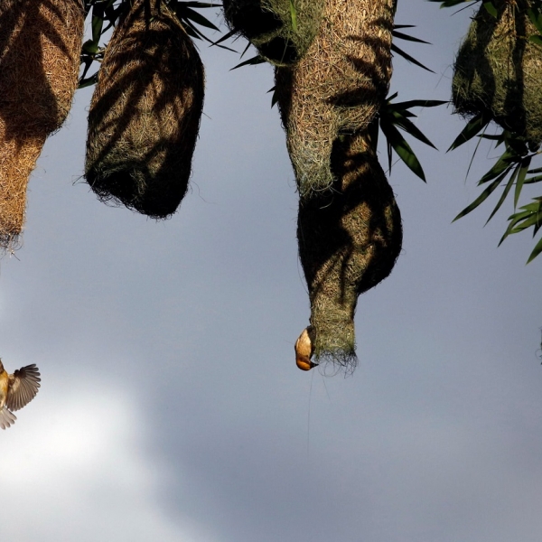 ნავეშ ჩიტრაკარი - ფეიქარას ბუდეები ბამბუკის ხეზე, ლალიტპური, ნეპალი.