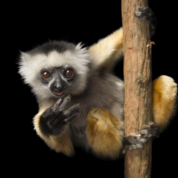 ჟოელ სარტორე - გაქრობის წინაშე მყოფი დიადემიანი სიფაკა (Propithecus diadema) ლემურია ლენდში, მადაგასკარი.