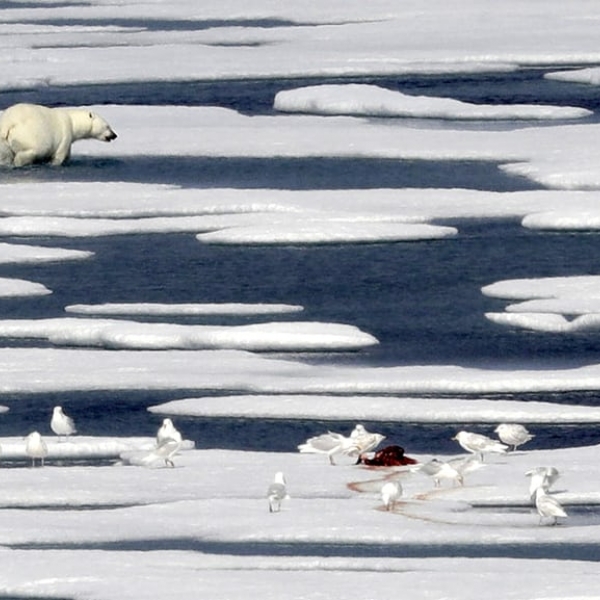 დევიდ გოლდმანი - კანადის არქტიკულ არქიპელაგში პოლარულმა დათვმა შეჭმული სელაპის ნარჩენები თოლიებს დაუტოვა.