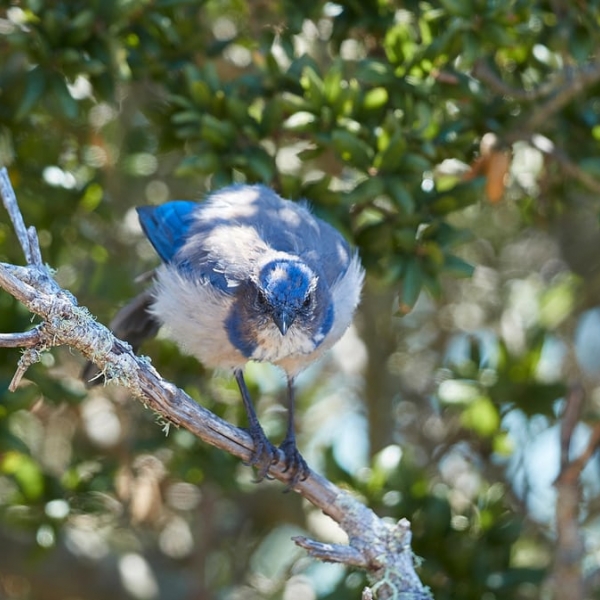 Alamy - კალიფორნიული ბუჩქნარის ჩხიკვი (Aphelocoma californica) ანჯელის კუნძულზე, კალიფორნია.