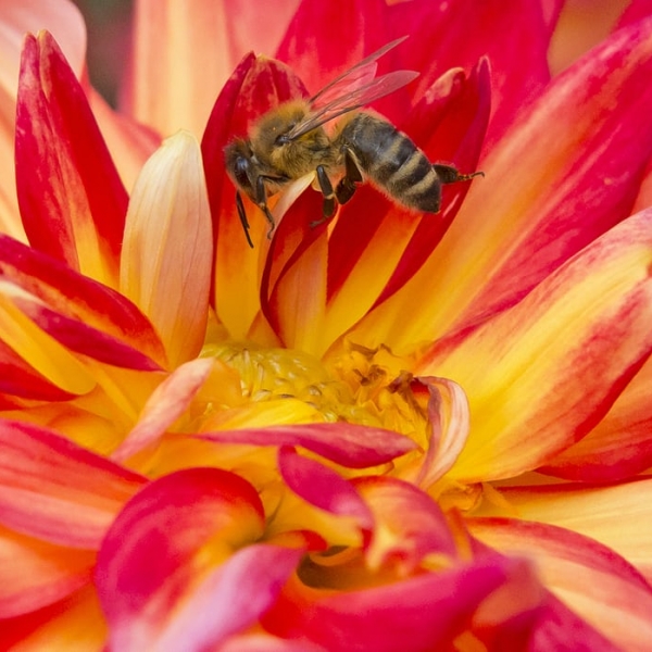 იენს მაიერი - გეორგინაზე მჯდარი ფუტკარი გერმანიის ქალაქ ერფურტში არსებულ მცენარეების გამოფენაზე.