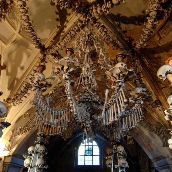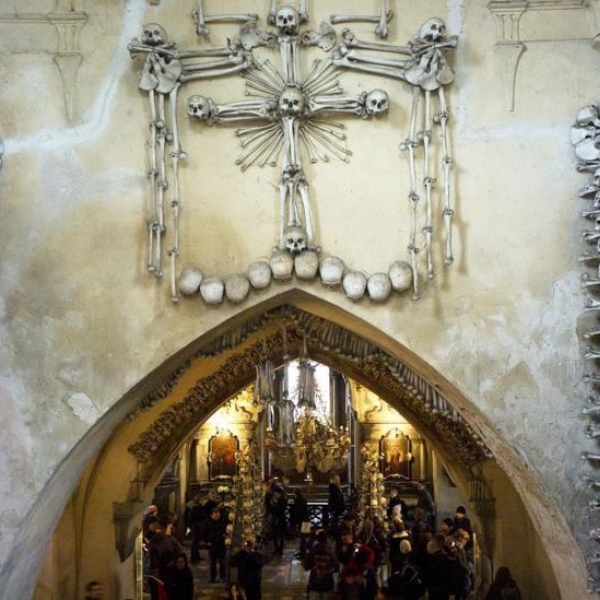 მე-15 საუკუნეში კი გოთიკური ტაძრის ასაშენებლად უამრავ საფლავს ექსჰუმაცია ჩაუტარდა და ამოთხრილი ძვლები პირამიდების ფორმით დაგროვდა ეზოში, იქამდე სანამ მე-19 საუკუნეში ბოჰემიაში მცხოვრებმა მდიდარი გვარის, შვარცენბერგის წარმომადგენლებმა ოსტატი დურგალი არ დაიქირავეს, რომელსაც დაგროვილი ძვლებისთვის რაიმე იერსახე უნდა მიეცა.