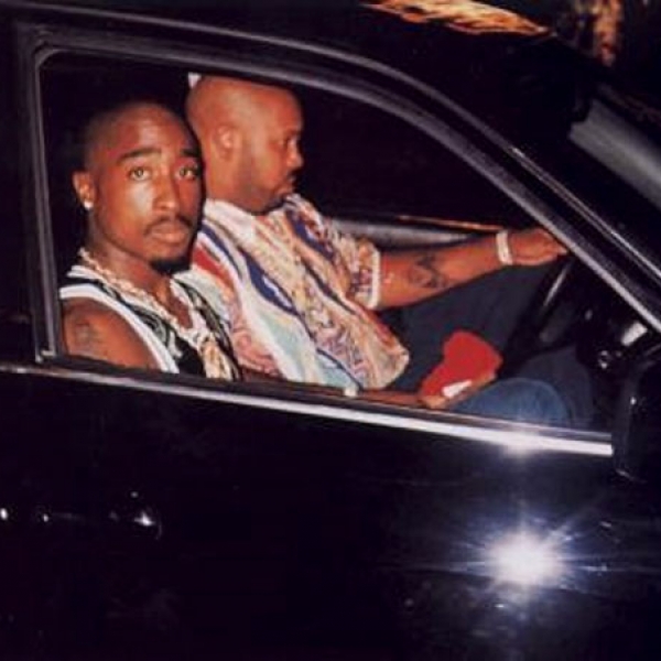 ტუპაკ შაკური (1971-1996) - ცნობილი რეპერის ცეცხლსასროლი იარაღით მკვლელობამდე წამებით ადრე გადაღებული ფოტო.