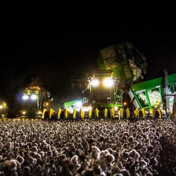 კომბაინი ბამბის პლანტაციაში როკ მუსიკის კონცერტს ჰგავს