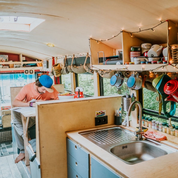 ავტობუსში, სადაც ყოველდღიური ცხოვრებისთის საჭირო ყველანაირი პირობაა შექმნილი, სტუმრებისთვის ექვსი საწოლია განკუთვნილი.