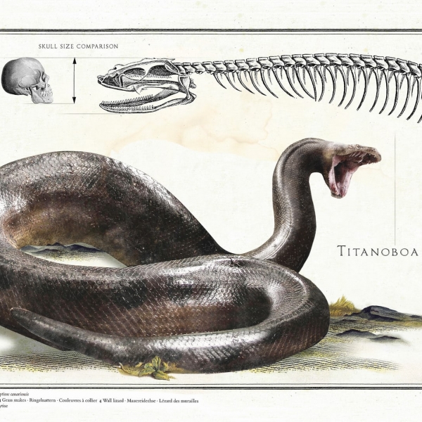 გიგანტური გველი ტიტანობოა დაახლოებით 60 მილიონი წლის წინ ბინადრობდა, მას ადამიანის გადაყლაპვა იოლად შეეძლო.