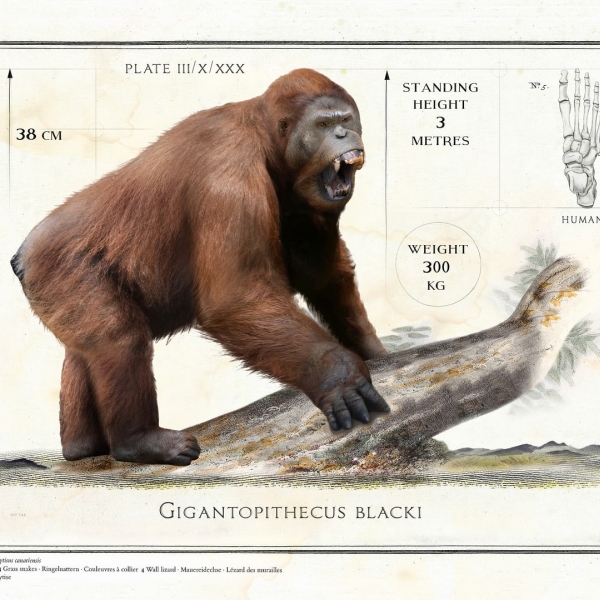 მაიმუნის წინაპარი გიგანტოპითეკი 9 მილიონი წლის წინ ცხოვრობდა, 300 კგ-ს იწონიდა და მისი სიმაღლე 3 მეტრი იყო.