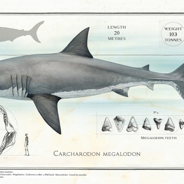 თანამედროვე თეთრი ზვიგენის დიდი ზომის წინაპარი კი მეგალოდონი იყო.