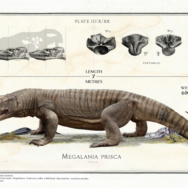 კომოდოს დრაკონი ვარანის მსგავსი დიდი ხვლიკი (Megalina prisca) 600 კგ-ს იწონიდა და სიგრძეში 7 მეტრი იზრდებოდა.