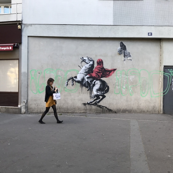 ბენქსის მოტივი მიგრანტების პრობლემა და მათდამი ემანუელ მაკრონის დამოკიდებულებაა. მოგეხსენებათ, ბოლო სამ წელიწადში პარიზში არსებულ მრავალი ბანაკის არსებობის მიუხედავად, საფრანგეთის პრეზიდენტმა მიგრანტების მიმართ პოლიტიკაში აკრძალვები შეიტანა.