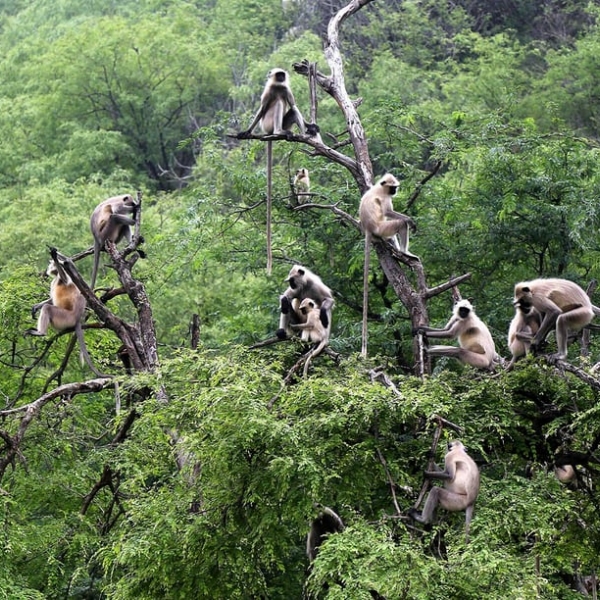 ჰიმანშუ შარმა - ხის ტოტებზე მყოფი ლანგურების ჯგუფი რაჯასტანის შტატის ქალაქ პუშკარის მახლობლად.