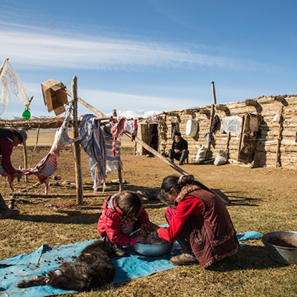 როდესაც კაცები ნადირობენ ან საძოვარზე არიან გასული, ქალები ძროხებს წველიან, რძეს ადუღებენ, დღვებენ და კარაქისა და ყველის კეთებას იწყებენ. პროდუქტები დიდხანს უნდა ინახებოდეს, რადგან მაცივრები არ აქვთ. მათი დამზადებული ყველის ერთ-ერთი სახეობა ქვასავით მაგარია და თვეობითაა საჭმელად ვარგისი. ქალები საწვავზეც ზრუნავენ. აქ ხე არ იზრდება, ამიტომ ისინი ნაკელს აგროვებენ და წვავენ.