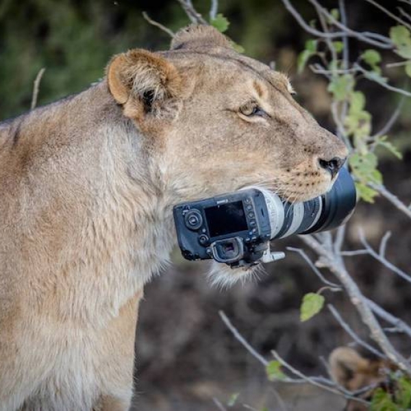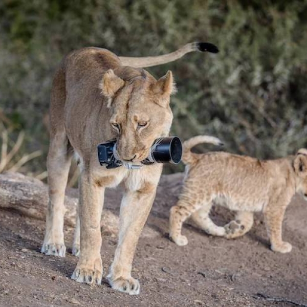 ცნობილი ფოტოგრაფი ზაფხულში ლომების პრაიდს იღებდა. ერთ დღესაც იგი ძუ ლომს მიადგა, რომელიც მის წინ ბოკვერების დაცვის მიზნით დადგა. ბარბარა იენსენ ფორსტერს $2600 ღირებულების კამერა დაუვარდა, ისე რომ მისი გრძელი ობიექტივი მაღლა მოექცა. როგორც ფოტოგრაფი ყვება, ძუ ლომმა კამერა პირით აიღო და ბოკვერებს მიუტანა, რომლებმაც მტვერში ძვირფასი ნივთით იქამდე ითამაშეს, სანამ არ მოწყინდათ.