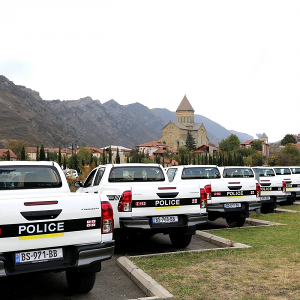 ახალი მანქანების გადაცემის ცერემონია მცხეთა-მთიანეთის პოლიციის დეპარტამენტის შენობის მიმდებარე ტერიტორიაზე გაიმართა.
