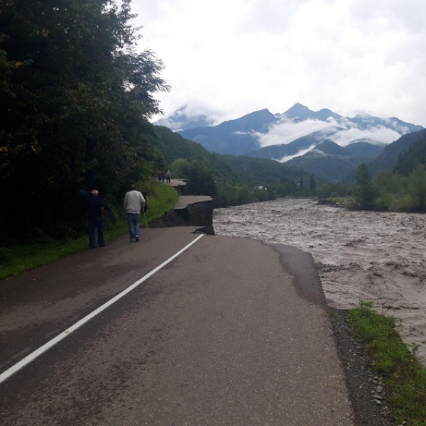 გუშინდელმა ძლიერმა წვიმამ და სეტყვამ რაჭაში მდინარე რიონის და მისი შენაკადების ადიდება გამოიწვია. სტიქიის შედეგად, 12 სოფელი და 2000-ზე მეტი ადამიანი გარე სამყაროს მოწყდა.