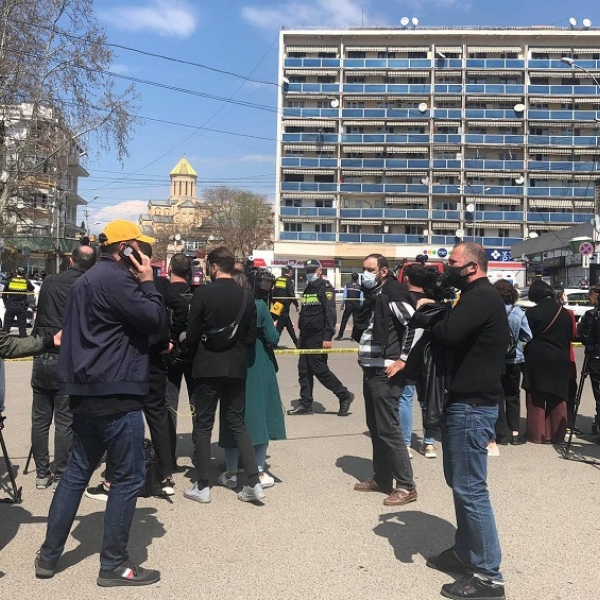 „აქ ვდგავარ ხოლმე, „ბირჟაზე“. ერთი ბიჭია იარაღით შეჭრილი. იქიდან ქალი გამოვიდა, რომელიც შიგნით იყო, როდესაც ბანდიტი შეიჭრა. იარაღი შუბლზე დამადოო. სამი თანამშრომელი ჰყავს აყვანილი და ერთი დაცვა“, – ამბობს მამაკაცი.