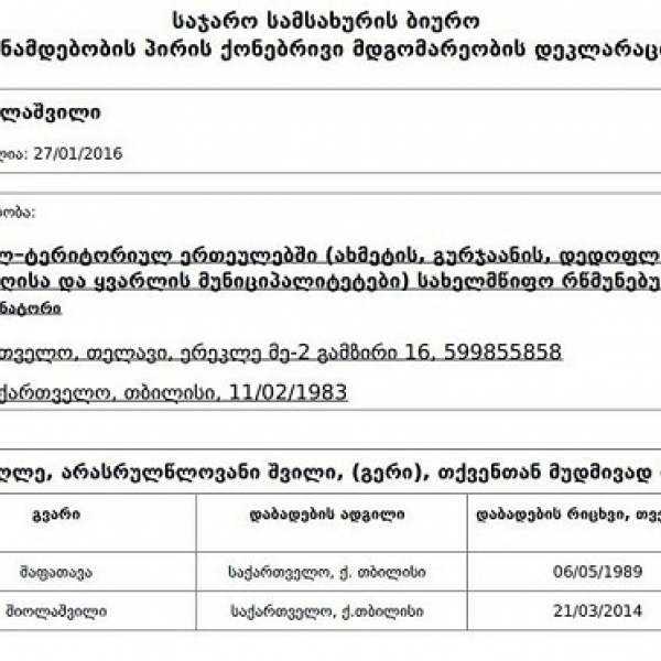 ამრიგად, ყოფილი გუბერნატორისა და ამჟამად პარლამენტის წევრის მამის მიერ შეძენილი უძრავი ქონების ღირებულებამ საერთო ჯამში, 75 000 ლარი შეადგინა.