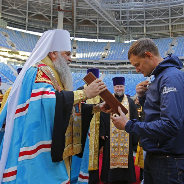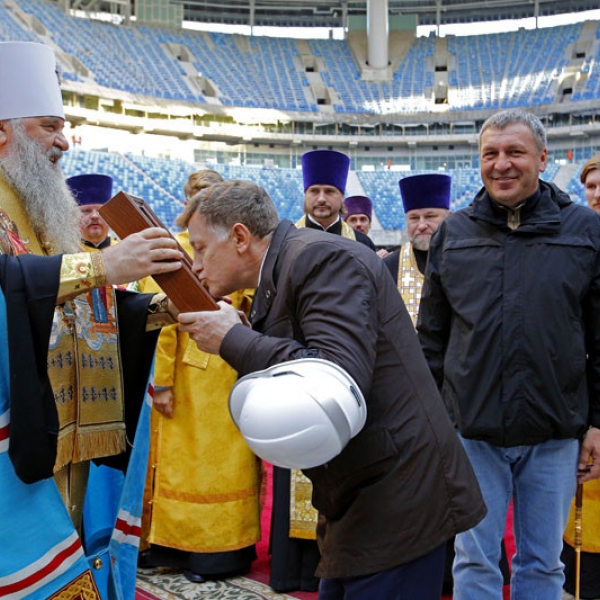 სტადიონის კურთხევის ცერემონიას მღვდელმსახურებთან ერთად პეტერბურგის ვიცე-გუბერნატორი იგორ ალბინიც ესწრებოდა.