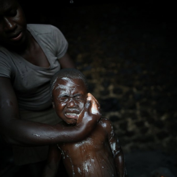 Reuters - ბუკანი, ჰაიტი: ანიტა თავის ვაჟ რომენსონს ბანს კუნძულ ისპანიოლაზე მდებარე სოფელში.