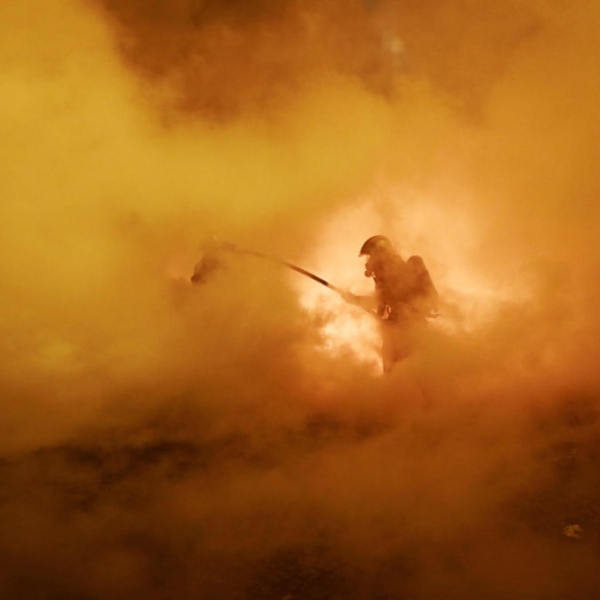 სამირ ალ-დუმი - პარიზი, საფრანგეთი: მეხანძრე ცდილობს ცეცხლმოდებული მანქანის ჩაქრობას ანტი-სამთავრობო აქციის შემდეგ.
