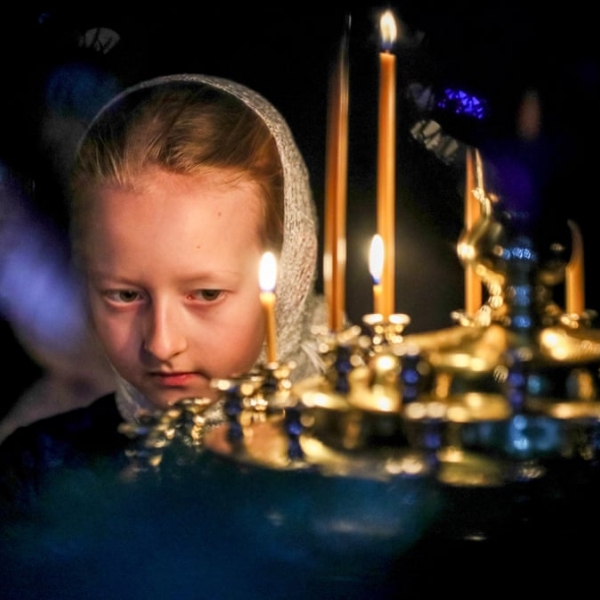 მიხაილ ტერეშჩენკო - მოსკოვი, რუსეთი: გოგონა პოკროვის ბავშვთა მართლმადიდებლური სარეაბილიტაციო ცენტრიდან საშიბაო ლიტურგიას ესწრება.