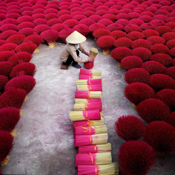 AFP - კვან ფუ კაუ, ვიეტნამი: ქალი საკმევლის კონებს ახარისხებს.