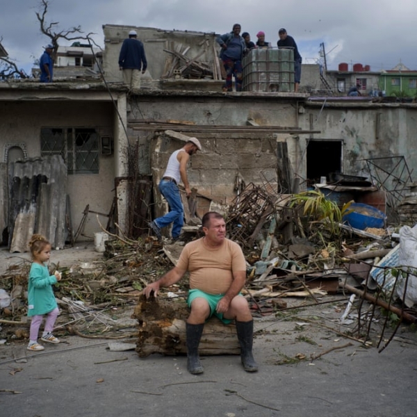 რამონ ესპინოსა - ჰავანა, კუბა: ადამიანების ჯგუფი ტორნადოგადავლილ შენობებთან.