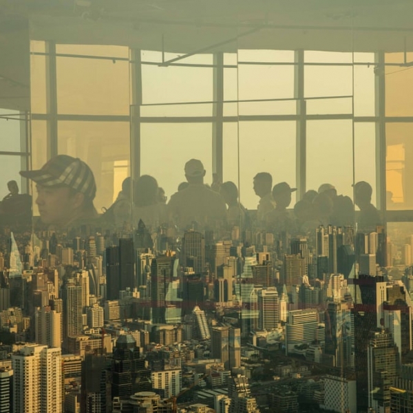ლორან დე ჩიკა - ბანგკოკი, ტაილანდი: შუშაზე არეკლილი ქალაქის ლანდშაფტი ძლიერი სმოგისას.