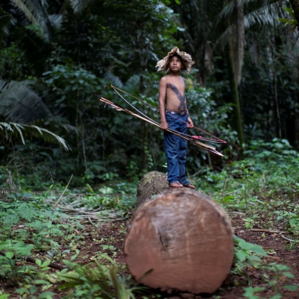 Reuters - კამპო ნოვო დე რონდონია, ბრაზილია: მკვიდრი მოსახლეობის წარმომადგენელი ბავშვი მოჭრილ ხეზე ურუ-ეუ-ვაუს რეზერვაციაში.