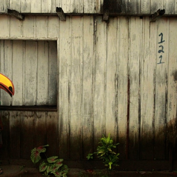 AP - კამეტა, ბრაზილია: ტუკანის ნიღაბ-კოსტიუმში გამოწყობილი მამაკაცი კორტაო და ბიჩარადას ფესტივალზე, რომელიც გარემოს დაცვას ეძღვნება.