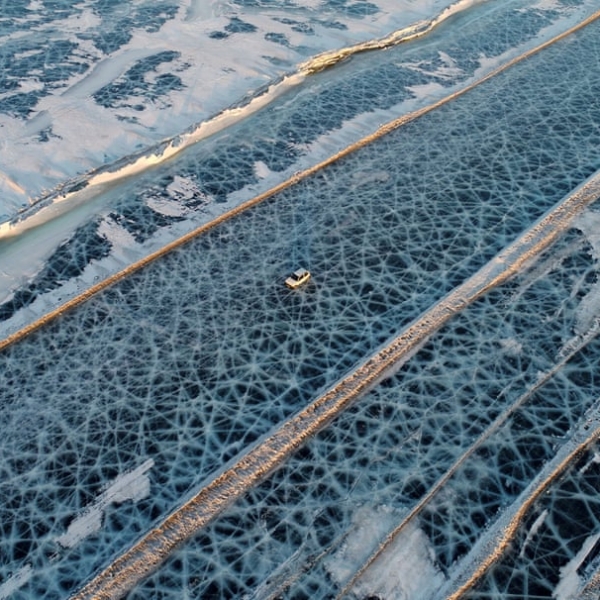 Reuters - კრასნოიარსკი, რუსეთი: ავტომობილი გაყინულ მდინარე ენისეიზე.