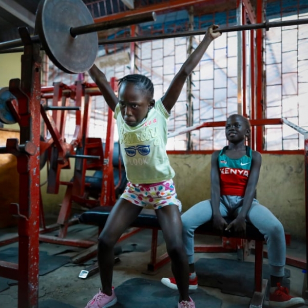 EPA - ნაირობი, კენია: 8 წლის კეშა ოდავა და ოლიმპიელი სპორტსმენის, მერსი ობიეროს 10 წლის შვილი ჩენელ ობიერო ვარჯიშისას.