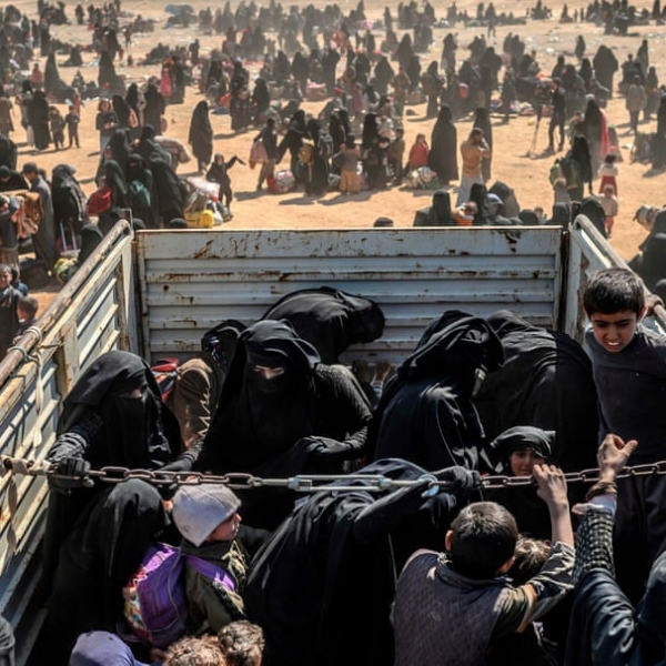 ბიულენთ ქილიჩი - დეირ ეზორი, სირია: „ისლამური სახელმწიფოს“ კონტროლირებულ დასახლება ბაღუზიდან ევაკუირებული ქალების და ბავშვები.