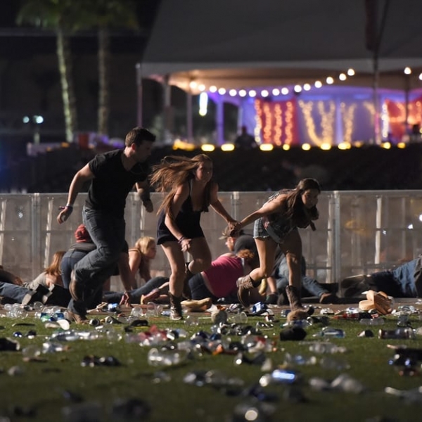 დევიდ ბეკერი - ლას ვეგასი, ნევადა: ხალხი მუსიკალური ფესტივალის ტერიტორიიდან გარბის მას შემდეგ, რაც თავდამსხმელმა ცეცხლი გახსნა და სამოცამდე ადამიანი იმსხვერპლა.