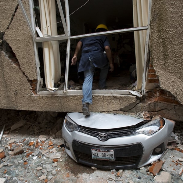 რებეკა ბლექუელი - მეხიკო, მექსიკა: 38 წლის მექანიკოსი როდრიგო დიას მეხია მიწისძვრისგან დანგრეულ სახლში შედის.