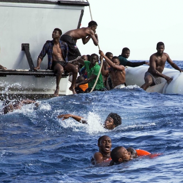 ლიზა ჰოფმანი - ხმელთაშუა ზღვა: აფრიკელი ლტოლვილები ლიბიის სანაპიროსთან ახლოს. სამაშველო ოპერაციის მიუხედავად ხუთი მიგრანტი დაიღუპა.