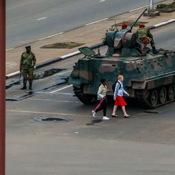 ჯაკესაი ნჯიკიზანა - ჰარარე, ზიმბაბვე: პრეზიდენტ რობერტ მუგაბეს შესაძლო გადაგომის შემდეგ, დედაქალაქის ქუჩებში კონტროლი სამხედროებმა დაამაყრეს.