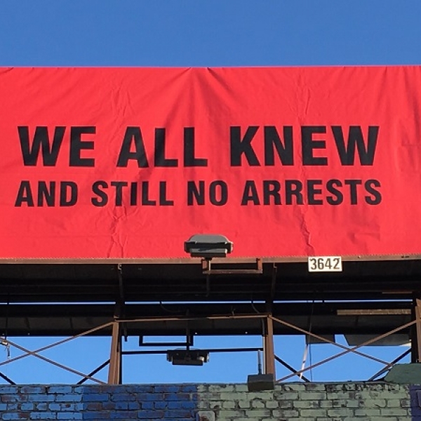 უილშირის ბულვარსა და ლა ბრის ავენიუს მახლობლად აღმართულ სამ სარეკლამო ბილბორდზე შემდეგი ტექსტებია დართული: