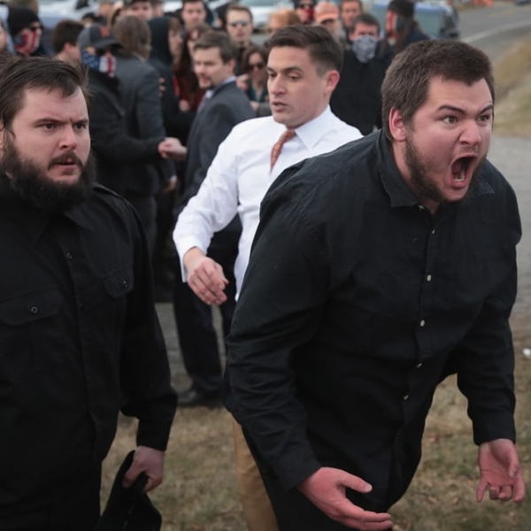 სკოტ ოლსონი - ისტ ლანსინგი, მიჩიგანი: თეთრკანიანი ნაციონალისტებისა და მათი მოწინააღმდეგეების შეტაკება მიჩიგანის უნივერსიტეტში, ნაციონალისტების ლიდერ რიჩარდ სპენსერის სიტყვით გამოსვლამდე.