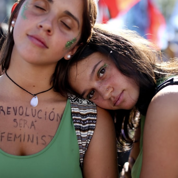 ნატაშა პისარენკო - ბუენოს აირესი, არგენტინა: ქალთა დემონსტრაციის წევრები აქციაზე. ერთ-ერთი მათგანის მკერდზე ესპანურენოვანი წარწერაა: „რევოლუცია იქნება ფემინისტური“
